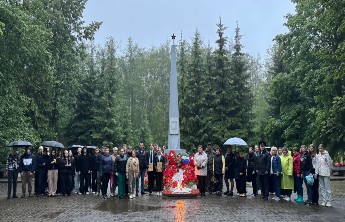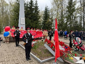 В конце митинга были возложены цветы к Вечному огню и плите солдат, погибших при исполнении воинского долга.