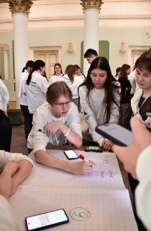У каждого памятного знака ребята выполняют задания, связанные с историей Великой Отечественной войны и блокадного Ленинграда. За правильно выполненные задания команда получала баллы, а за рассказ о подвиге Героя - дополнительные баллы.