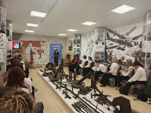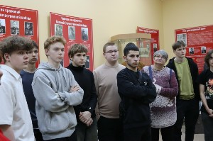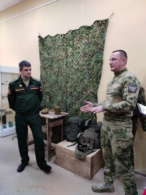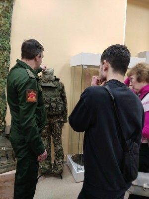 Затем участники центра вместе с преподавателем Митенковым Николаем Александровичем, ветераном специальной военной операции, участником проекта «СВОи Герои 53», посетили открытие выставки «СВОи:фронтовые будни», посвященной жизни российских бойцов, находящихся в зоне специальной военной операции. Там Николай Александрович совместно с участником СВО, ветераном боевых действий Лашмановым Евгением Николаевичем рассказали о солдатских буднях, о том, как устроена жизнь российских солдат на передовой, для чего необходимы отдельные элементы экипировки и как они спасают жизни в экстремальных условиях, о личных предметах солдат, таких как аптечка и окопные свечи, которые играют огромную роль в выживании на фронте.