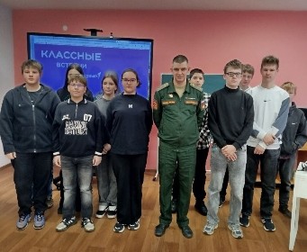 18 марта 2026 года заведующий отделом, руководитель центра военно-патриотического воспитания и допризывной подготовки МЦ "Диалог", участник проекта «Свои Герои 53» Митенков Николай Александрович встретился с учащимися МАОУ "СОШ" с. Грузино в рамках проекта "Диалоги с Героями".