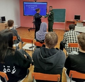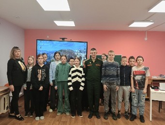 Руководитель Центра военно-патриотического воспитания и подготовки граждан (молодежи) к военной службе Николай Александрович Митенков провел с ребятами беседу и акцию «Письмо солдату», ребятам было предложено написать письма военнослужащим, находящимся в зоне СВО.